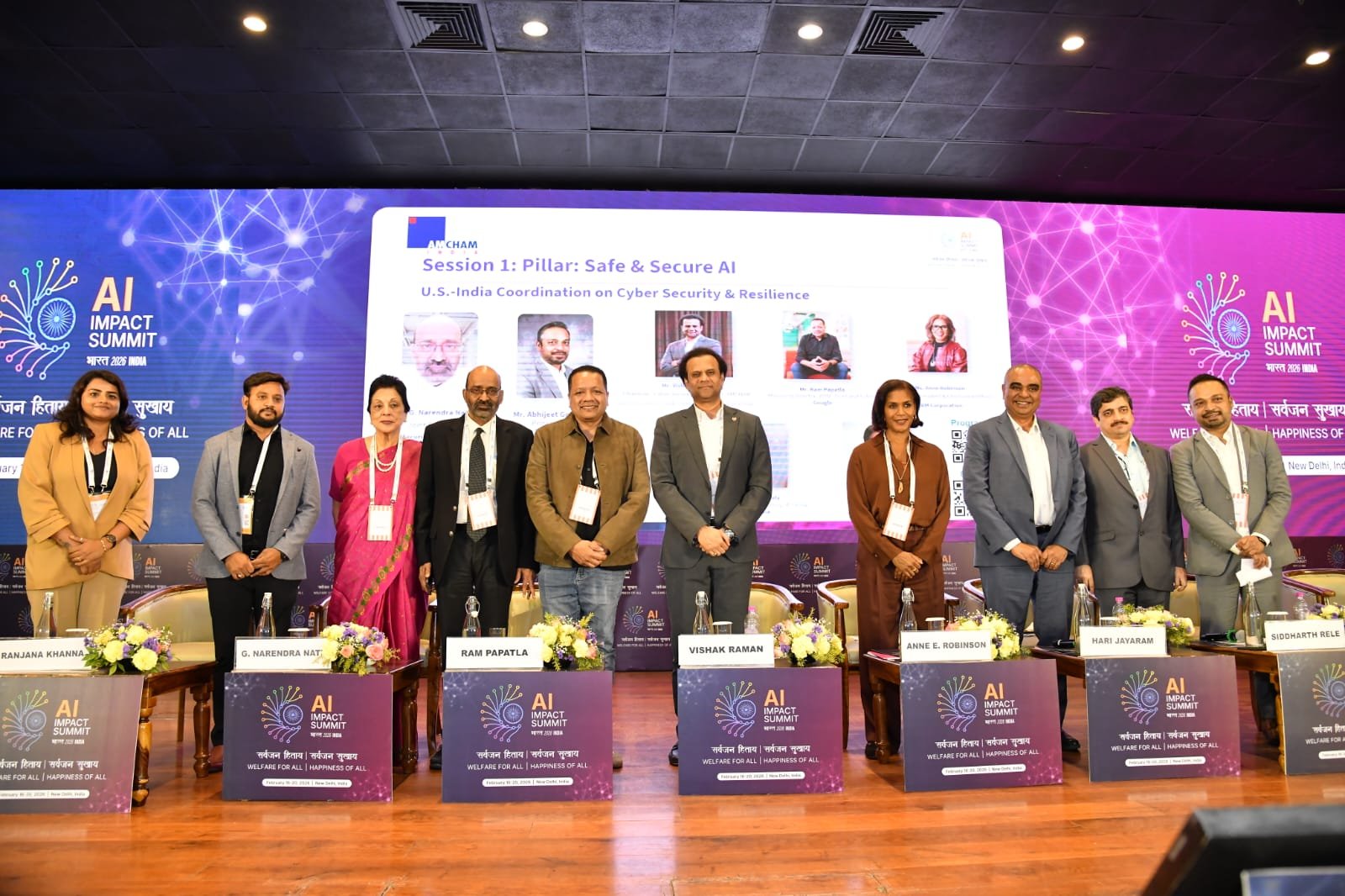 AMCHAM India’s sessions at the AI Impact Summit 2026 themed ‘U.S.-India: Building Trust and Innovation in the AI Age’ were held on February 17th at the Chanakya Auditorium, Sushma Swaraj Bhawan, New Delhi. The program was structured around three back-to-back sessions spanning safe and secure AI, the IndiaAI Innovation Centre, and governance and compliance in the age of sovereign AI. The program commenced with Ms. Ranjana Khanna, Director General CEO, AMCHAM, who highlighted the rapid pace of India’s digital transformation, including crossing one trillion digital financial transactions, and underscored the strategic importance of the U.S.-India partnership in building a cyber-resilient economy.