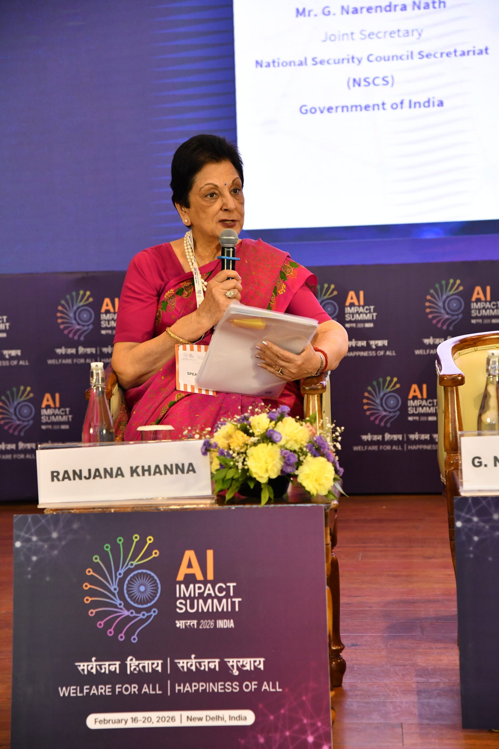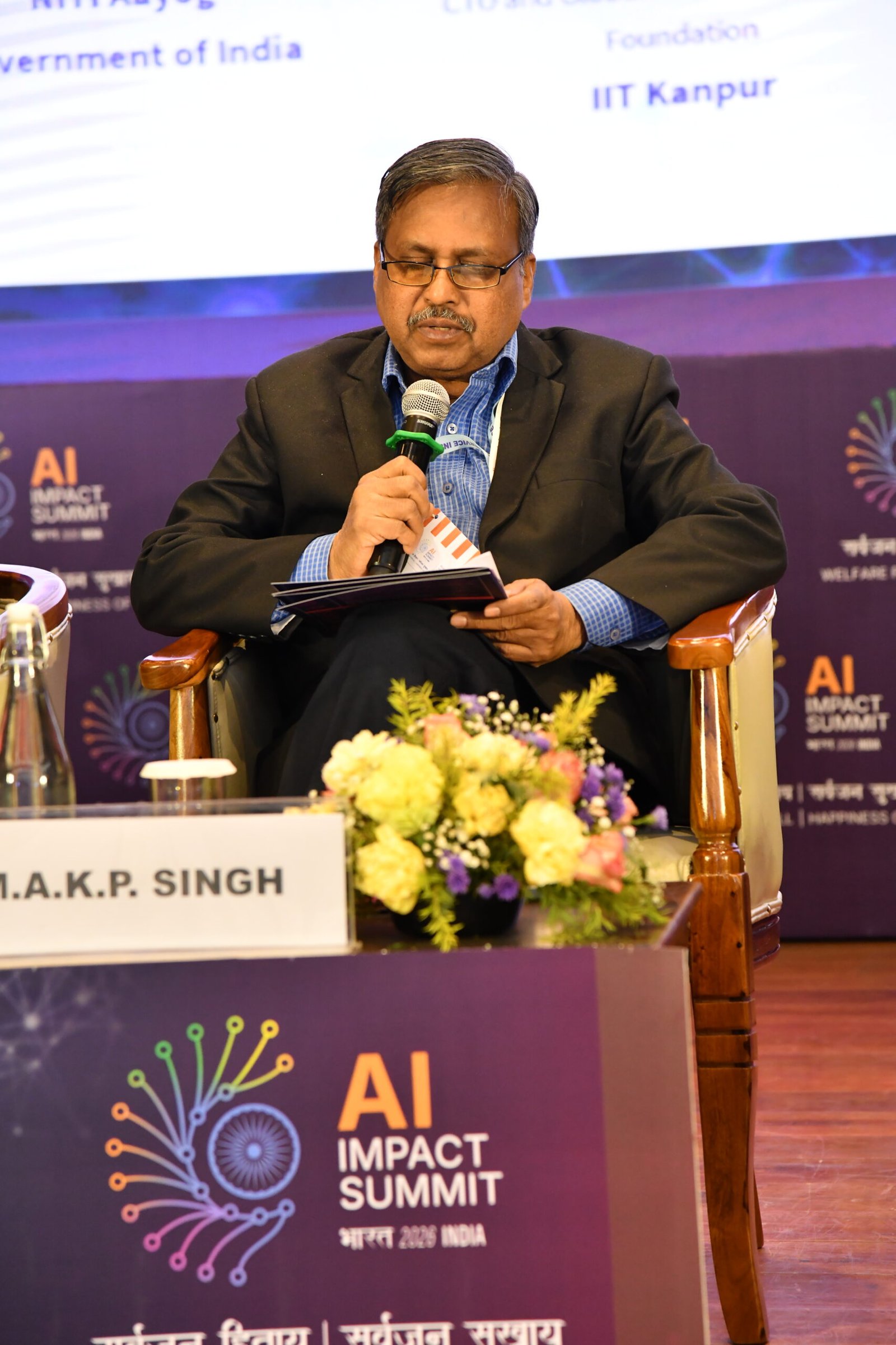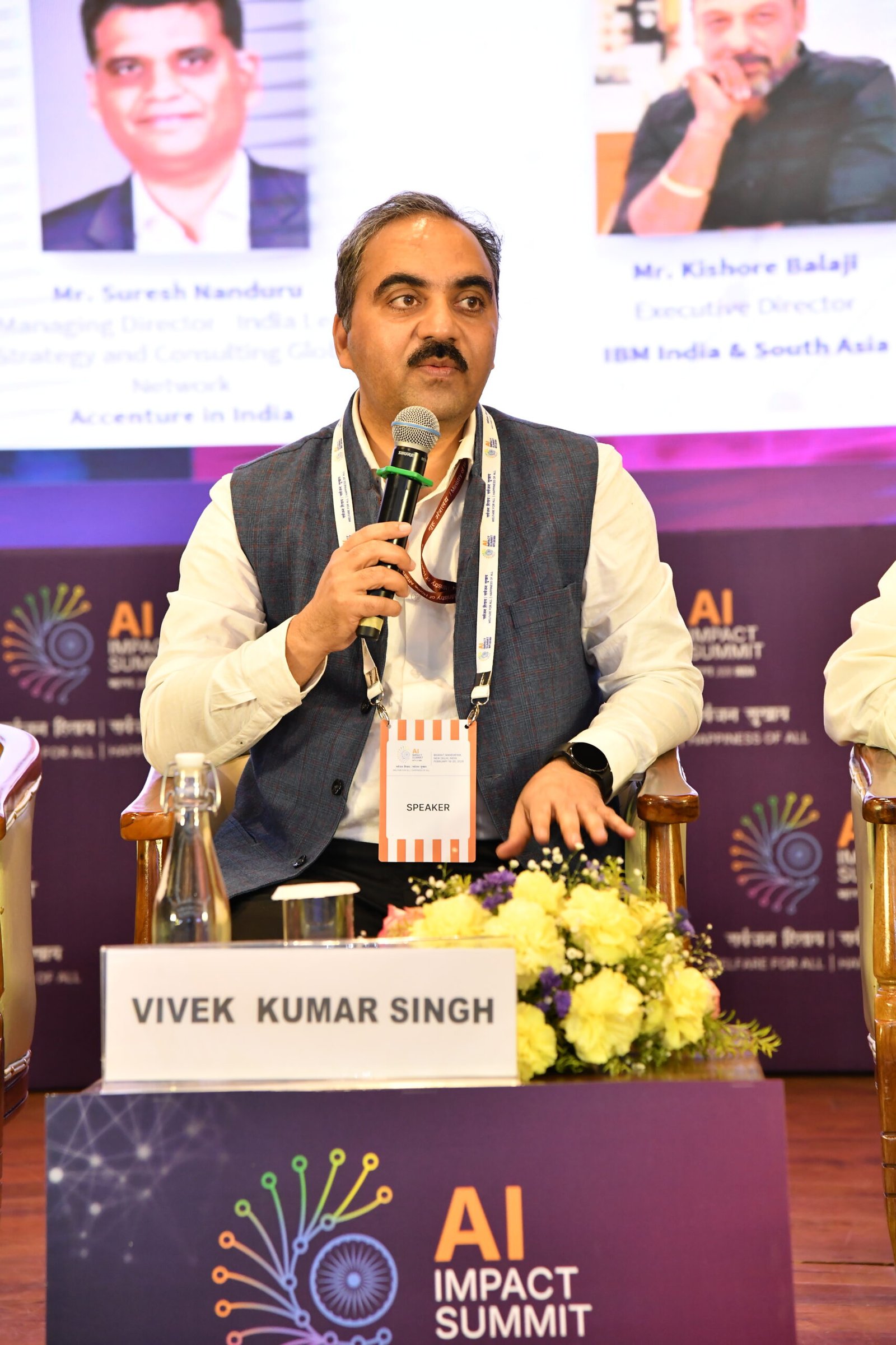 The second session, ‘Building India’s AI Foundation: The IndiaAI Innovation Centre and Indigenous Model Development,’ was moderated by Mr. Debashish Banerjee, Partner, Deloitte and Applied AI Leader, and featured Dr. Vivek Kumar Singh, Senior Advisor, S&T, NITI Aayog, Government of India, Mr. M.A.K.P. Singh, Member (Hydro) and Chief Information Security Officer, Ministry of Power, and CTO and Global Adviser, CyberPeace Foundation, Mr. Suresh Nanduru, India Lead, Strategy & Consulting Global Network, Accenture, Dr. Thomas Zacharia, SVP, Strategic Technical Partnerships and Public Policy, AMD, Mr. Kishore Balaji, Executive Director – Government Affairs, IBM South Asia, and Mr. Gokul V. Subramaniam, President and Vice President, Client Computing Group, Intel India. The session examined the rationale for India’s indigenous foundational AI models — including the need to address cultural and linguistic biases in global models and to serve India’s 22+ languages — while exploring how open-source, hardware-agnostic, and energy-efficient architectures can support sovereign AI at scale. Speakers highlighted that affordable edge inferencing and a robust national data ecosystem are as critical as compute investment in realizing the India AI Mission’s goals.