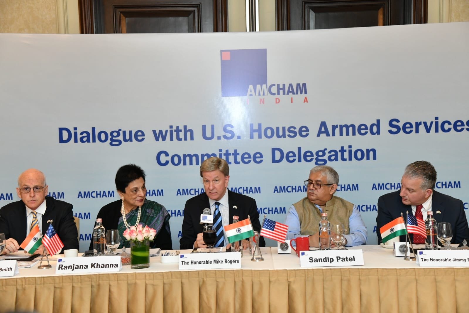 On January 27th, AMCHAM hosted a dialogue with a U.S. House Armed Services Committee (HASC) delegation with Chairman Mike Rogers, Ranking Member Adam Smith, and Representative Jimmy Patronis in New Delhi. Ms. Ranjana Khanna, Director General CEO, AMCHAM welcomed participants. Mr. Sandip Patel, Chairman, AMCHAM and General Manager, India/South Asia, IBM, Managing Director, IBM India, provided an overview of the U.S.-India partnership. Mr. Michael Fernandez, Vice Chairman, AMCHAM and Country Head India & GBD South Asia, Lockheed Martin India, shared an overview of the U.S.-India defense partnership. Mr. Salil Gupte, Immediate Past Chairman, AMCHAM and President, Boeing India & South Asia, moderated the interaction with members. American defense industry leadership in India highlighted their commitment to strengthening the American and Indian defense industrial bases. Members briefed the delegation on opportunities in the defense landscape, including emerging technologies. Mr. Samit Ray, Co-Chairman – Defense Committee, AMCHAM and Deputy Vice President, Government Affairs, Raytheon Technologies gave the concluding remarks. Mr. Gaurav Mehndiratta, Co-Chairman – Defense Committee, AMCHAM and Partner and National Head, Corporate and International Tax, KPMG in India participated.