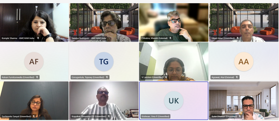 AMCHAM’s GCC Committee organized a virtual meeting on October 10th. Ms. Sandya Rodrigues, Regional Director – Hyderabad Chapter, AMCHAM and Ms. Komple Sharma, Director, AMCHAM welcomed committee members and gave an overview of the forthcoming activities. Ms. Uma Ratnam Krishnan, Chairperson – GCC Committee, AMCHAM and MD, Optum India shared her vision for the committee which included steps to avoid repetitive topics, encouraging collaboration, identifying themes relevant for the U.S.-India corridor and creating a stronger community of U.S. GCCs in India. The committee also deliberated upon the theme for the annual GCC Summit scheduled to be held in Hyderabad in March 2026.