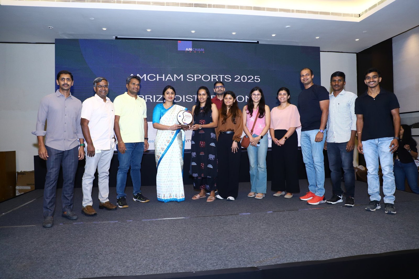 AMCHAM’s Hyderabad Chapter Sports 2025 Prize Distribution Day took place at the Hyatt Gachibowli, Hyderabad, on February 20th to honor the winners and runners-up of the annual sports program, which featured 11 sporting disciplines. Ms. N. Bhavani Sri, IAS, Secretary (Addl. Charge), National Turmeric Board; Deputy Development Commissioner – SEZs, Telangana, Ministry of Commerce & Industry, Government of India, graced the event as the chief guest.