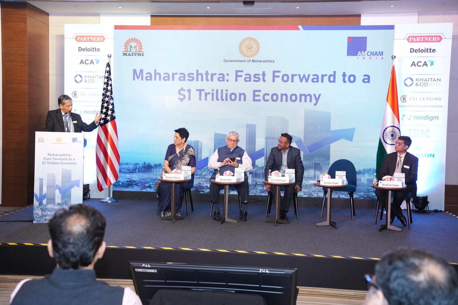The first session focused on ‘Manufacturing & Investment – FDI Challenges and Opportunities’ with Mr. Siddharth Ghoshal, National Executive Board Member, AMCHAM and CEO & Country President, Dow India, Mr. Anil Bhatia, Chairman – Energy Committee, AMCHAM and Vice President & Managing Director – India, Emerson, and Mr. Abhishek Shrivastava, Managing Director-India, Middle East, Africa (IMEA), The Lubrizol Corporation with Mr. Easwaran Subramanian (Easwar), Partner, Deloitte India as the moderator. Speakers acknowledged Maharashtra’s historical leadership in manufacturing and its strong reputation among foreign investors. They discussed the need for consistent and predictable regulatory frameworks, clarity in taxation, and improved speed in land acquisition and environmental clearances. Emphasizing the growing global competition for investments, the session highlighted the importance of upgrading logistics networks, enabling industry 4.0 readiness, and strengthening advanced manufacturing capabilities across sectors. Panelists agreed that with its infrastructure, talent availability, and longstanding industrial culture, Maharashtra remains one of the most attractive destinations for U.S. manufacturers, provided processes become more time-bound and digitally integrated.