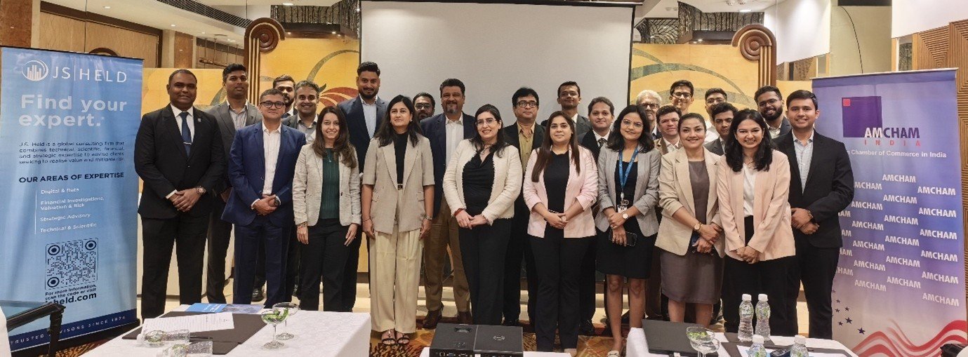 AMCHAM’s Western Region, in partnership with J.S. Held as knowledge partner, hosted an exclusive breakfast roundtable on ‘Forensics & Risk Mitigation in the Age of AI’ on November 18th at Marine Plaza, Mumbai, bringing together senior leaders from private equity, legal firms, forensic advisory practices, and U.S. multinationals for a deep discussion on how AI is transforming investigations, compliance, and risk management.